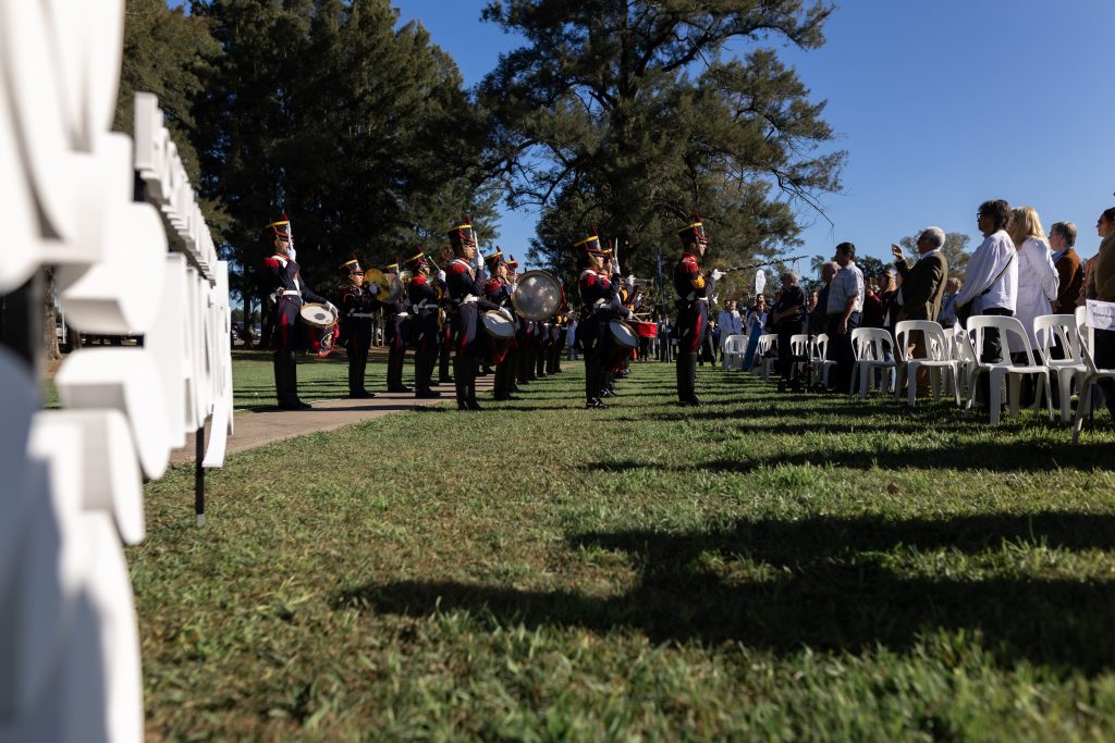 La ceremonia fue conducida por el Dr. Fernando Burgos, quien invitó a entonar el Himno Nacional, interpretado por la Fanfarria Militar “Alto Perú” del Regimiento de Granaderos a Caballo “General San Martín”.