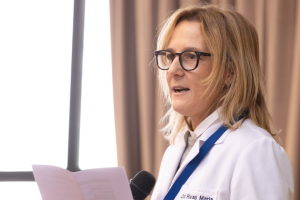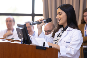 Uno de los momentos más emotivos llegó con el testimonio de Macarena Iudica, egresada de la residencia posbásica en Hemato-oncología Infantil, quien habló en nombre de sus compañeros y compartió el sentido profundo de la vocación médica vivida durante la residencia: