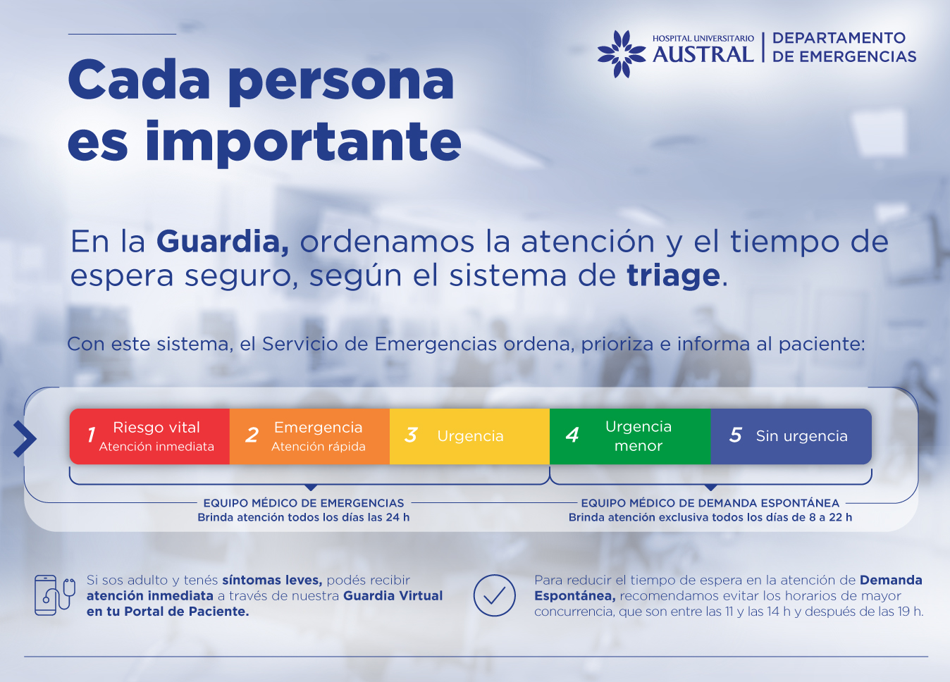 Al ingresar, nuestra enfermera te evaluará y realizará un triage de clasificación, a partir del cual se evalúa la gravedad de la situación y se asignan prioridades en la atención. Los pacientes graves tienen una mayor prioridad, por lo tanto, la espera para quienes no indiquen situación de gravedad puede ser indeterminada. Contamos con médicos especializados ante todo tipo de situaciones. La admisión de pacientes estará sujeta a la cantidad de pacientes en espera.