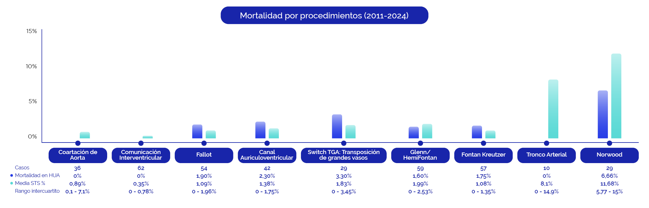 Los resultados de esta cirugías tipo los publica la The Society of Thoracic Surgeons Congenital Heart Surgery Database: (Numero de casos totales y mortalidad en porcentaje con confidence limits. The Society of Thoracic Surgeons Congenital Heart Surgery Database: 2018 Update on Outcomes and Quality. Ann Thorac Surg 2018;105:680–90)