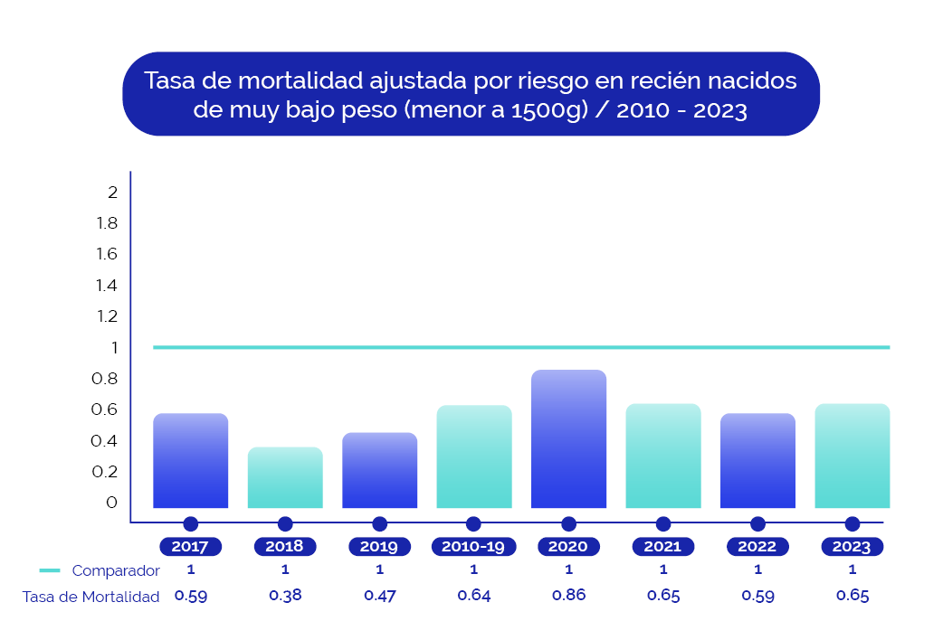 Comparador 1*: CPQCC (2017). Survival Without Major Morbidity Among Very Low Birth Weight Infants in California.