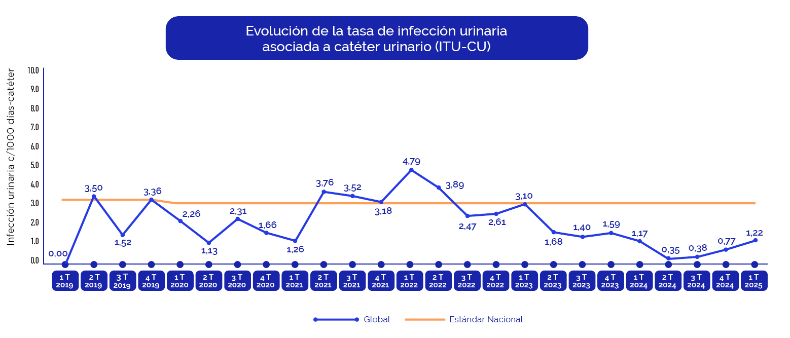 El cumplimiento con las medidas preventivas antes enunciadas ha permitido que la tasa de Infecciones Asociadas a Catéteres Urinarios se encuentre dentro de los estándares internacionales.