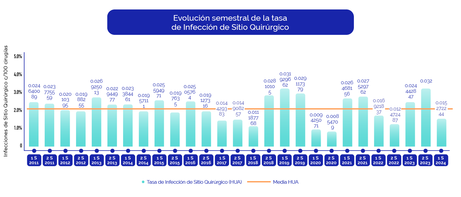 El cumplimiento con las medidas preventivas antes enunciadas ha permitido que la tasa de Infecciones de Sitio Quirúrgico se encuentre por debajo de las medias nacionales.